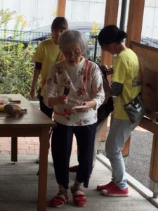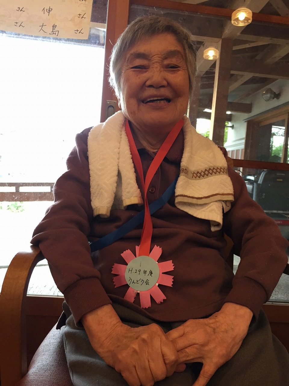下陣屋(笑楽日・風楽里) 2017年10月20日 投稿者:runrun-staff 運動会! 先日、風楽里・笑楽日合同で運動会を行いました! スプーンリレーや玉入れ、借り物競争など、出場している方はもちろん、 見ている方も「がんばれー!」「あー、惜しい!!」と声を掛けながら盛り上がってみえました。 今年は赤組の勝利☆ スタッフから手作りのメダルをプレゼントをさせていただきました。 「金メダルもらっちゃったわ!」と、とても嬉しそうでした♪ さて、来年はどちらが勝つのでしょうか…!