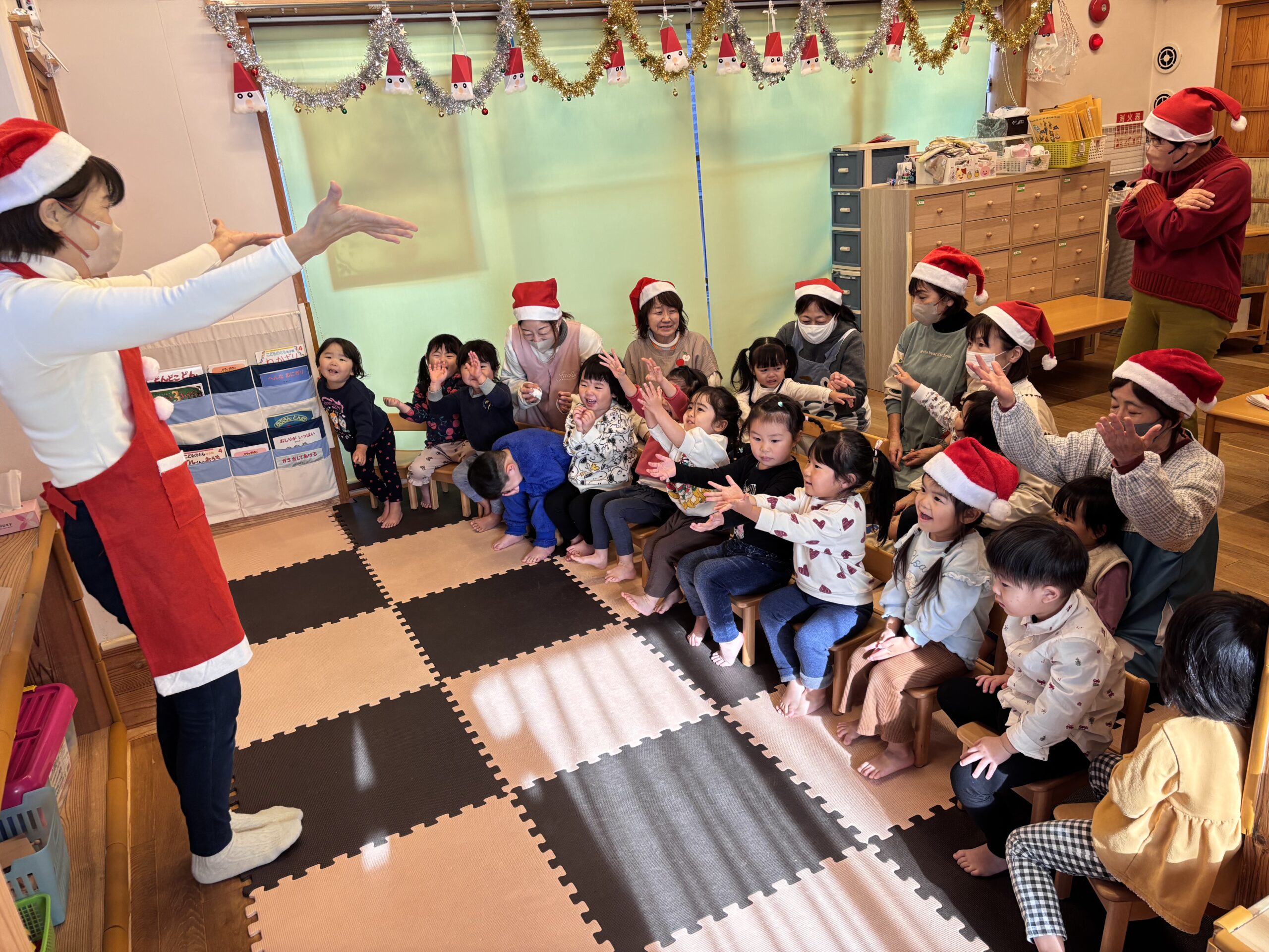 12月22日は善毎のクリスマス会でした! みんなでサンタさんの絵本を読んだり歌を歌っていると、どこからか鈴の音が…。 トナカイと一緒にサンタさんが遊びに来てくれました! […]